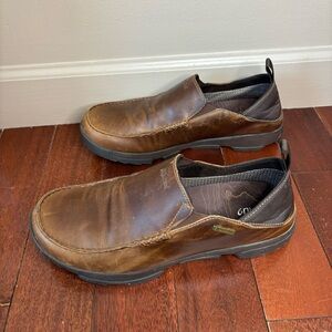 OluKai sz 12 Na’i WP Leather Slip On Waterproof Drop Heel Loafers Brown
