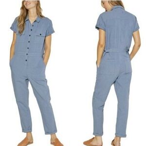 Outerknown Women’s Blue S.E.A Short sleeve Black button Utility Jumpsuit Small