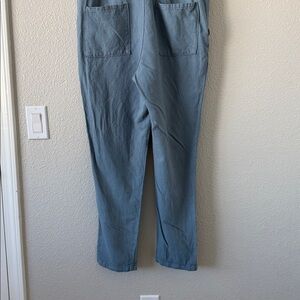 Outerknown Women’s Blue S.E.A Linen Organic cotton blend Short sleeve Black button Utility Jumpsuit Small