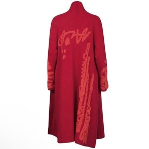 MOYURU Womens M Red Abstract Design Reversible Wool Coat Long Duster Cardigan