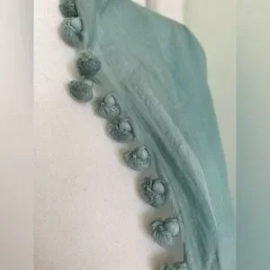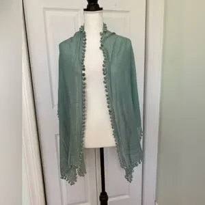 This beautiful scarf has wonderful handmade balls adorning its sides. It is in excellent condition and perfect for this summer.