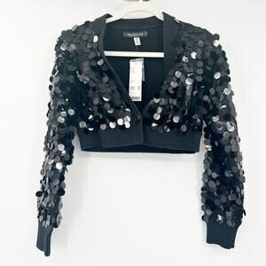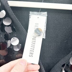 NWT Urban Outfitters UO Womens Disco Party Iris Sequin Crop Cardigan Sweater in Black. Size Extra Small.