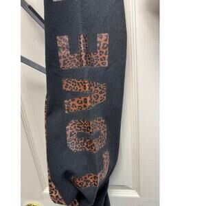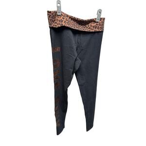 Victorias Secret PINK Leggings M Black Foldover Waistband Leopard Print Y2K EUC