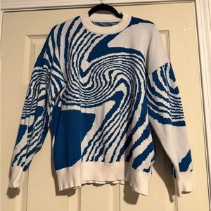 Stylish men's sweater featuring a striking blue and white pattern. Perfect for adding a bold touch to your wardrobe.