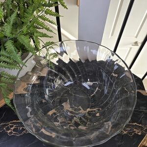 Vintage Anchor Hocking Victoria Optic Swirl Large Glass Punch Bowl / Salad Bowl