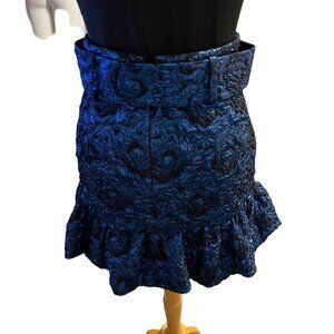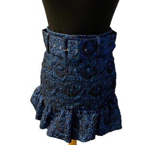 NWOT Zara Blue Jacquard Skirt With Frilled Hem Size S