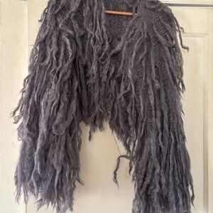 Miss knit wear Fringed Gray Knit crop Cardigan 78% kid mohair 13% wool 9% nylon