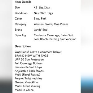 Lands' End Ladies' Swimsuit, Multi colored,Navy, NWT