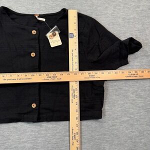 Free People Top Womens XL Black Short Sleeve Cropped Button Front Shirt NWT
