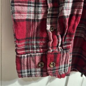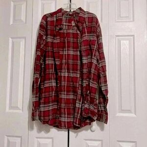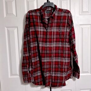 XLT - cotton red plaid button down shirt. 3 button cuffs. Top front button pocket. Preowned good with tag condition please check all pictures. Button down collar. Approximate Measurements Laying flat: pit to pit 26” - shoulder to hem 34” - sleeves 29” . Preowned good used condition please check all pictures.