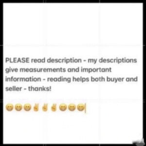 I sell clean preowned used items not new & not perfect can be linty so wash first. I do check clothes carefully but could miss issue just let me know. I do not dry clean my price reflects that. I ship same or next day. I am not responsible for USPS delays. I sell lower because I use no frills packing to protect items. If you have hesitation buying please ask questions - if still unsure please don't purchase. I don't mean to disappoint and take survey comments and rating seriously as I am a 5 star gold seller ✌️.