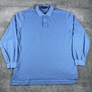 Polo Ralph Lauren Shirt Men's Large Blue Long Sleeve Pima Cotton Flesh Pony