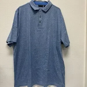 Paul Fredrick Polo Shirt Mens XXL Blue Heathered Space Dye Short Sleeve Knit