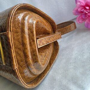 👜WIEN Vintage cylindrical caramel reptile / snake skin handbag