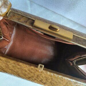 This is a nearly perfect vintage WIEN caramel color handbag made from some sort of reptile skin.