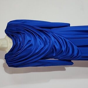 Significant Ruchung and Draping around the Neckline and Bodice Creating a Cowl Neck Effect.
