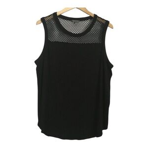 Vince Camuto Black Fishnet Style Mesh Casual Sleeveless Tank Top - Elegant black sleeveless top with a stylish mesh detail. Perfect for any occasion. Pullover closer. Mesh panel on the top, solid black. Tags - goth, punk, whimsigoth, dark, gorpcore, witch, etc.