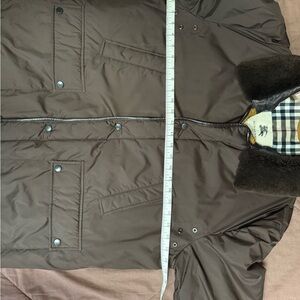 Stylish Burberry puffer jacket. Features sleek design and practical pockets. Perfect for cold weather.