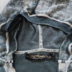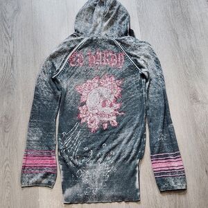 Vintage Y2K Ed Hardy Rhinestone Skull Hoodie Long sleeve Women Small Grunge Top
