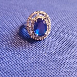 Elegant Silver and Blue Faux Gemstone Ring....size 7 3/4