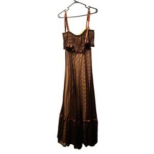 Vintage 1970's brown lace tie shoulder maxi dress size 8