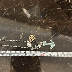 Used. Good condition. Nautical Sea necklace. 4 charms. 2 anchors, 1 pearl and one wheel. Chain included. Chain length: 20 inches plus 2 inch adjustable link. Measurements, please see photos.