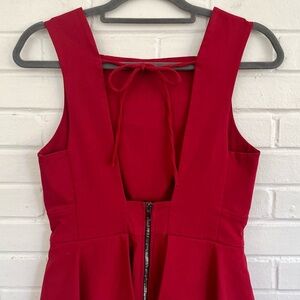 Monaco USA Fitted, Red Peplum Mini Dress w/ Zip-up & Tie Back, SZ L EUC