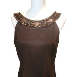 Connected Apparel Sheath Dress Womens 12 Brown Beaded Neckline Stretch Casual