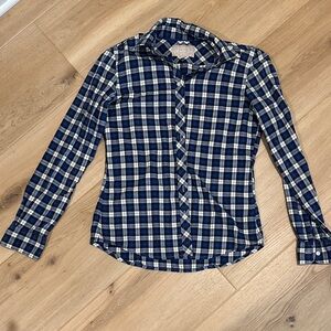 Stylish blue and white plaid button-up shirt. Perfect for casual wear. 17” ptp, 24” length. Flannel style, nice brushed feeling