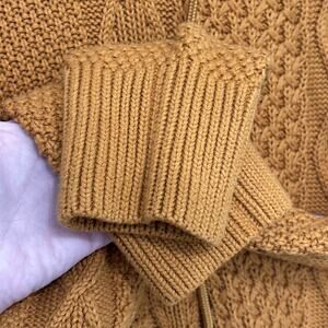 Cozy cowl neck sweater. Intricate cable knit design. Perfect for chilly days.