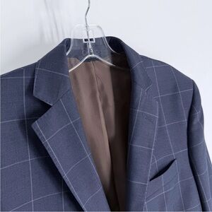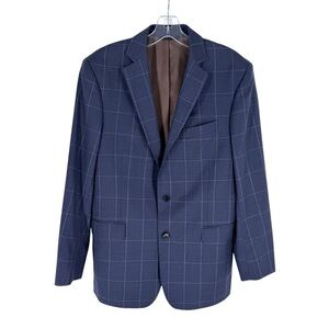 Brooks Brothers Blazer Mens Size 38S Blue Windowpane Plaid Wool Italian Fabric