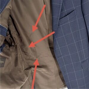 On the INTERIOR lining, there are some water spots throughout from being steamed - see photo; not visible when worn.
