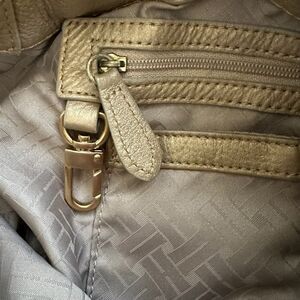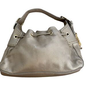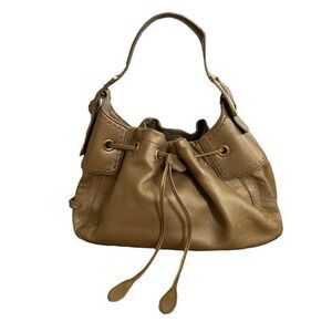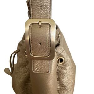 Cole Haan Metallic Gold Brass Leather Drawstring Shoulder Buckle Bag Purse Women