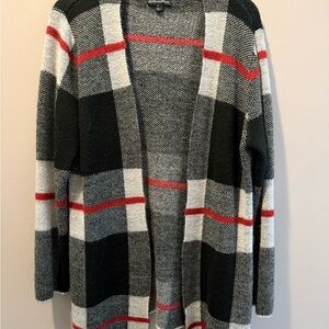 The neutral black, gray, white, and red plaid makes it simple to style with jeans, leggings, or over a solid top. Lightweight but warm, this is a great everyday cardigan you’ll reach for often.