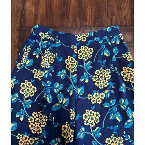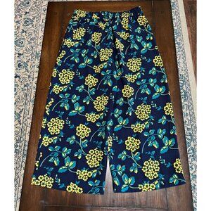 J.Crew Floral Wide Leg Pants Palazzos Cropped Pull On High Rise Blue Yellow 6 NEW