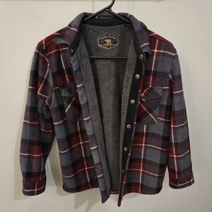 Freedom Foundry Boys Shirt Jacket Sherpa Lined Fleece Hooded Red Plaid