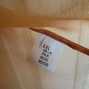 This nude, sheer 100% Italian silk georgette top effortlessly exudes sophistication and versatility. This timeless piece is designed to elevate any ensemble. Understated but luxurious, the silk top is carefully handcrafted and moves beautifully with the body as only silk can. It looks so luxurious with your favorite, old blue jeans, but dresses up beautifully, too. I just had to include a closeup of the sewing—it is, like all Rosamosario pieces, impeccably made. This top is cut to be oversized; measurements are included in photographs. ✨