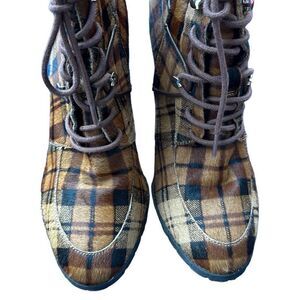 ANTONIO MELANI GRAYCIEE Plaid Calf Hair Leather Animal Print Fur High Block Heel Ankle Boots Size 7