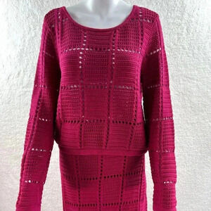 NWT Ultra Pink 2 piece Set Sm Crochet Sweater and Maxi Skirt Beachy Barbiecore