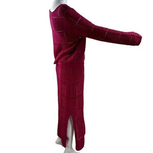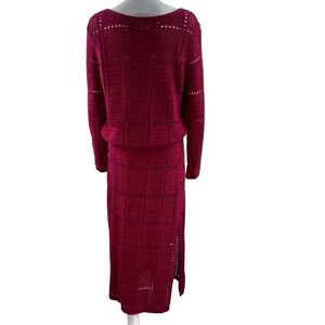 This NWT Ultra Pink 2 piece set includes a crochet sweater and maxi skirt, perfect for a beachy Barbiecore look. Size Small. Wear it together or separately for different looks!