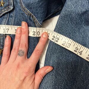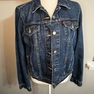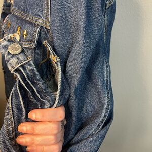 Stylish Levi's denim jacket. Features gold star accents. Classic button-up design. Perfect for any occasion stars seem to be put on after but in excellent perfect condition third generation trucker jacket.