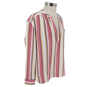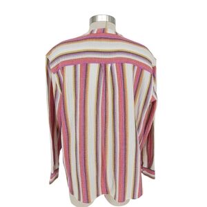 GAP Popover Shirt Multicolor Stripe Gauze Long Sleeve VNeck Relaxed Beach Top XL