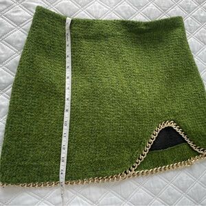 Zara Green Mini Skirt with Gold Chain Accent