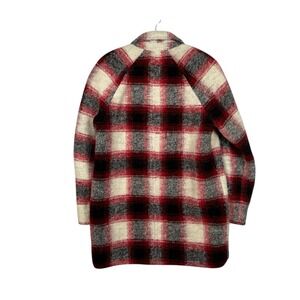 Madewell Black Red White Boucle Wool Blend Depot Cocoon Plaid Coat Sz M