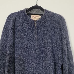 Woolrich Mens Wool 1/4 Zipper Sweater Size L Navy Blue Outdoor Warm Winter