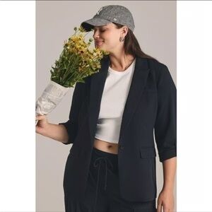 Anthropologie Meave Roll Sleeve Black Blazer Size 10