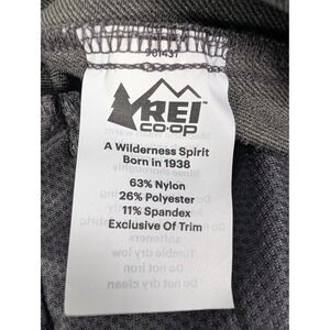 Branding and labels: REI Co-op logo printed at back left hip and on interior waistband tag; inner labels feature the REI Co-op mountain logo and the phrase "A Wilderness Spirit Born in 1938."
