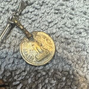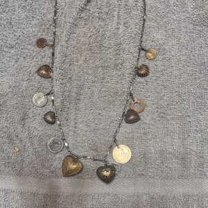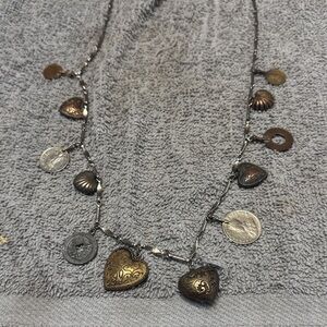 Vintage Charm Necklace with Heart and India Coin Accents 17 1/2” long