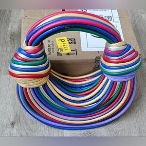 Vintage Style Multicolor Rainbow Handle Bag – Statement Fashion Purse