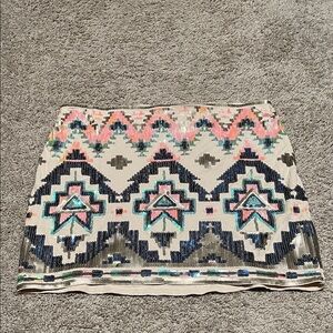 Express Multicolor Sequin Geometric Mini Skirt